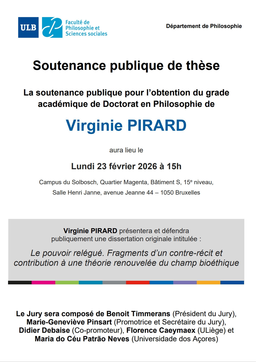 Soutenance publique de la thèse de Virginie PIRARD, doctorante en Philosophie et affiliée au centre de recherche PHI.